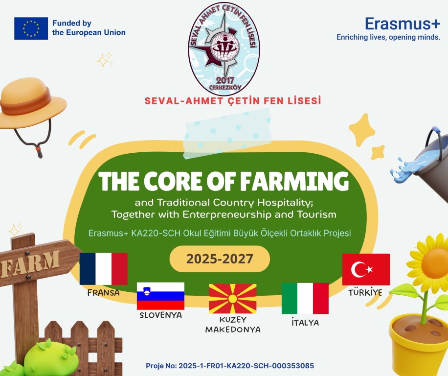 2025 yılı Erasmus+ Ana Eylem 2 (KA220-SCH) Okul Eğitimi İşbirliği Ortaklık kapsamında Fransa Ulusal Ajansına sunulan proje başvurumuz kabul edilmiştir. " “The Core of Farming and Traditional Country Hospitality; " isimli projemiz 2025-2027 yıllarını kapsamaktadır.